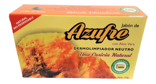 Ingredientes: Jabón base elaborado con aceite de Coco, Azufre y Extracto de Sábila.