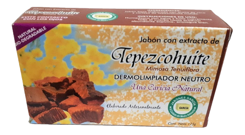 Ingredientes: Jabón base elaborado con aceite de Coco, brea de pino y Extracto de Tepezcohuite.